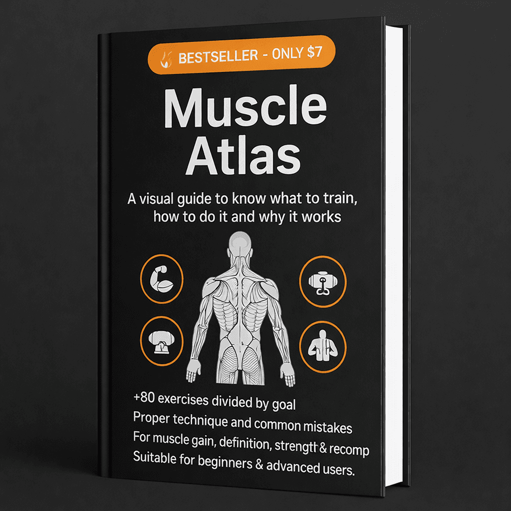 A complete visual guide with over 80 exercises, broken down by muscle group. Perfect to improve your form, avoid injuries, and train with total confidence — at home or at the gym. Ideal if you want to train right, not just “go through the motions.”